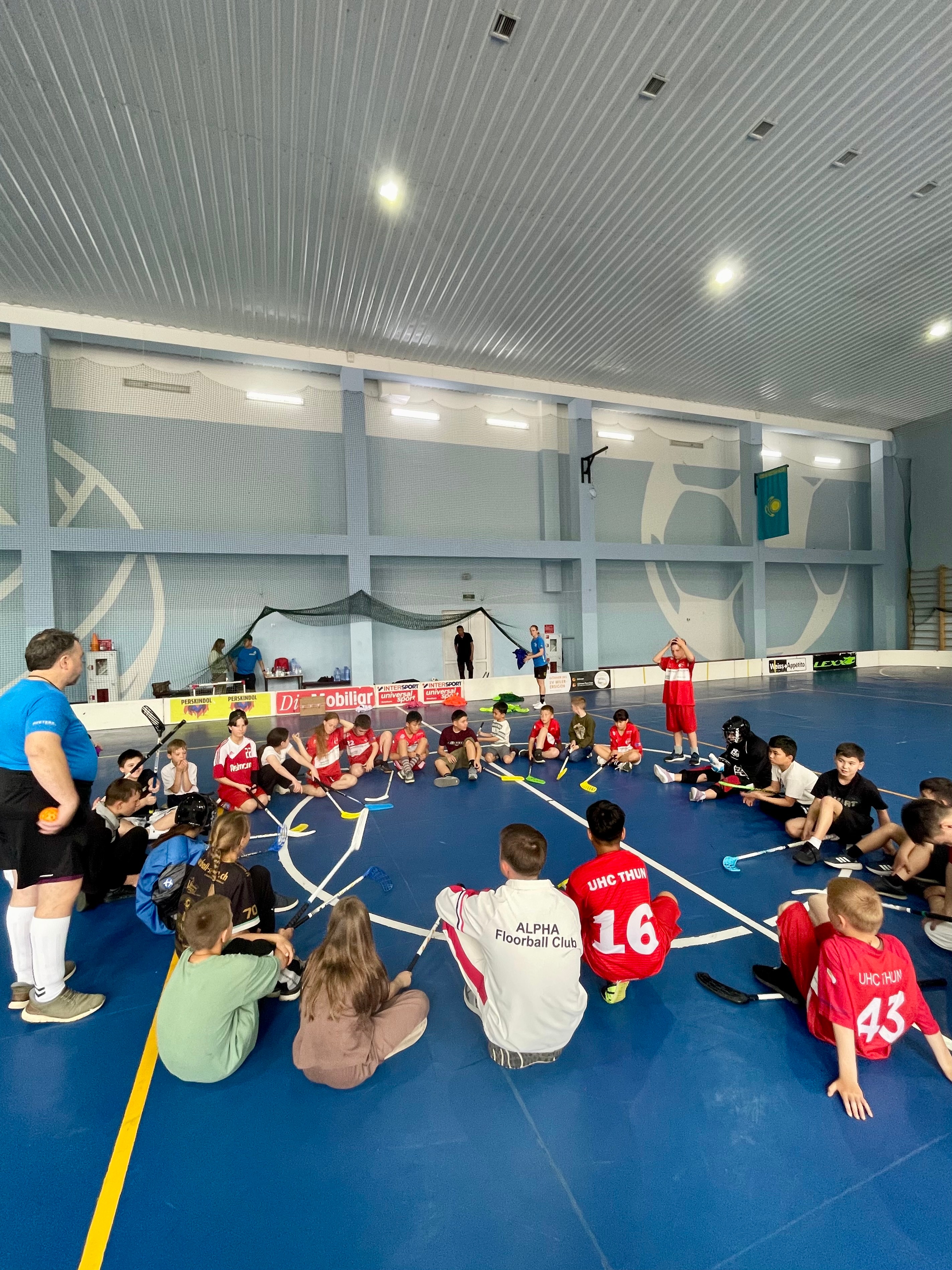 Der Kurs in Taraz fand in einem Zentrum für kreative Bildung statt. Insgesamt nahmen 35 Kinder aus drei verschiedenen Teilen der Stadt teil. Die Gruppe war sehr gemischt: Von Newcomern bis zu Kindern, die bereits regelmässig Unihockey-Unterricht erhalten, war alles dabei.