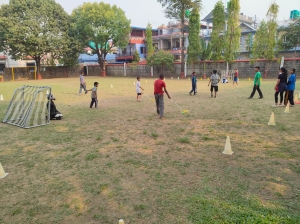 Nachdem die Teilnehmenden in Richtung Himalayan Life Zentrum zurück gingen, massen wir Leiter uns noch bei einem kurzen Grossfeldspiel.