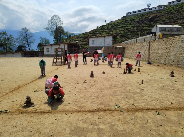 Nach einer Nacht in Kathmandu ging es dann auch schon wieder weiter ins Yangri-Tal. Da stand zwar nicht Unihockey im Fokus, wir übernahmen aber die Doppellektion Sport jeder der 5 Schulklassen in Bangdang.