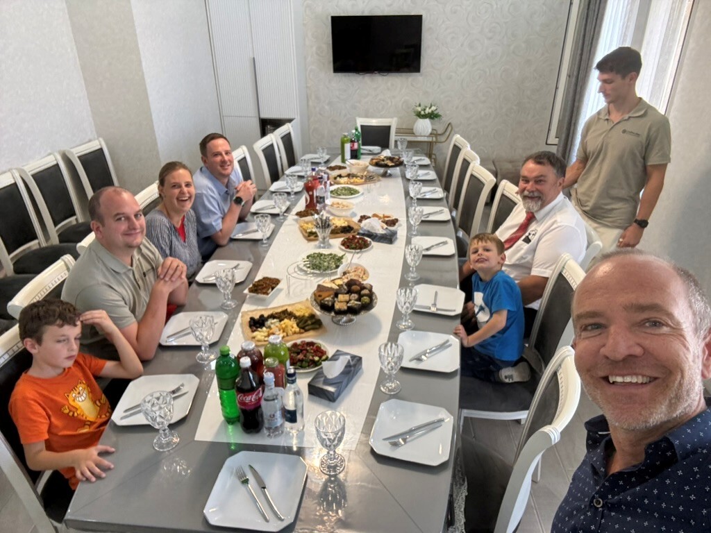 Danach sind wir Schweizer zum gemeinsamen Mittagessen mit dem Pastor der Kirche und weiteren Gästen (ein Ehepaar aus Amerika) eingeladen. Der Raum wirkt wie ein Stück Himmel – alles in Weiss, und der Tisch, wie könnte es anders sein, ist mit armenischen Spezialitäten gedeckt. Wir fühlen uns sehr wohl und tauschen uns mit den Leuten vor Ort aus.