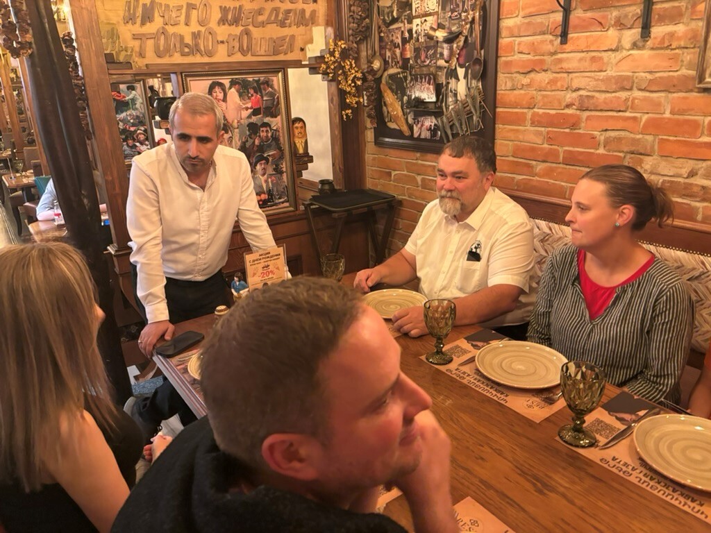 Heute ist ein normaler Kurstag mit weiteren Übungen und „Mätchlen“. Passing etc. funktioniert bei vielen Teilnehmern immer besser – sie geben sich Mühe und machen erkennbare Fortschritte. Am Abend sind wir von Armen und seiner Frau in ein typisches armenisches Restaurant eingeladen. Wir sitzen im Untergeschoss und haben einen Tisch für uns allein. Wir haben Armen gebeten, nicht zu viel zu bestellen – wir können ja immer noch nachbestellen, wenn wir ausgegessen haben :-) Und so haben wir es dann auch gemacht – ganz nach Schweizer Art.