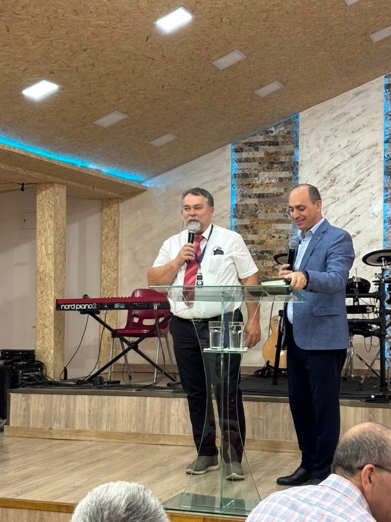 Sonntag - Tag 4Heute steht ein Gottesdienstbesuch mit Armen in seiner Gemeinde auf dem Programm. Wir sind – wie immer – pünktlich und haben natürlich auch die mittlerweile bekannten 30 Minuten armenischen Puffer einkalkuliert. Jetzt nur noch mit dem sowjetischen Lift nach unten fahren. Klingt einfach, war es aber leider nicht. Was wir nicht (mehr) wussten: Dieser Lift kann nur drei Personen befördern – auch wenn nirgends darauf hingewiesen wird. Kein Schild, keine Angaben, nichts.